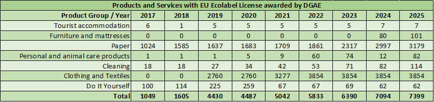 Products and Services with EU Ecolabel Licence awarded by DGAE